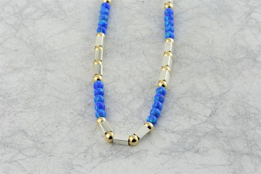 Lavan Light Blue Opal Gold and Silver Necklace