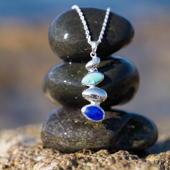 Pebbles of turquoise and lapis lazuli gemstones amongst sterling silver emulate the stunning Cornish coastline.